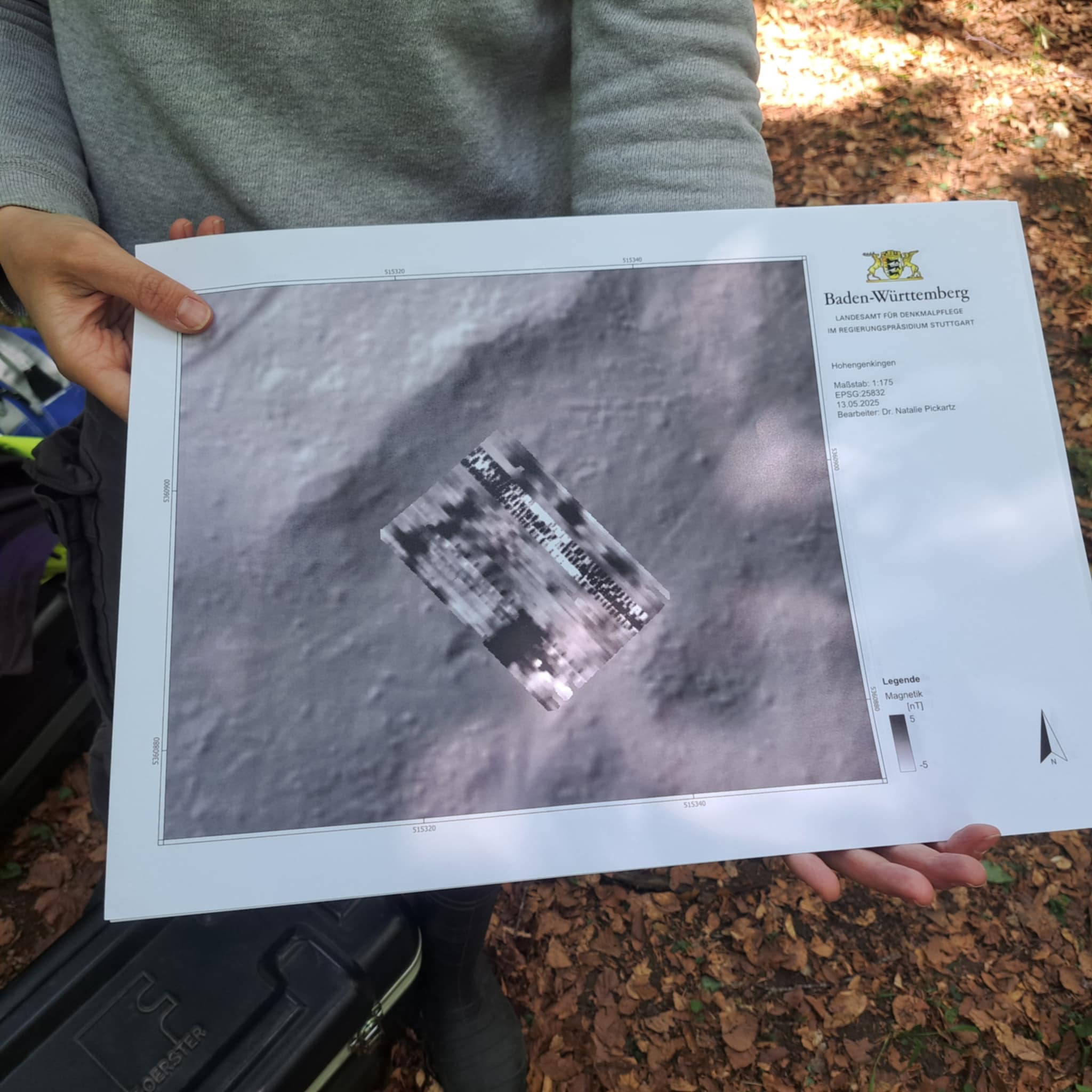 Nennen wir sie die Wunderwaffe der Archäologie: die Geophysik. Sie verheißt die Hoffnung, durch die Erdschichten sehen zu können, ohne graben zu müssen. Denn Graben bedeutet immer auch zerstören. Das wichtigste Buch der Menschheitsgeschichte, die Erde mit ihren Sedimenten, kann nur ein einziges Mal gelesen werden. Mitte Mai wird die Burg zum Lehrsaal von Dr. Natalie Pickartz. Sie ist beim Landesdenkmalamt angestellt, bekleidet dort die einzige Fachstelle für Geophysik in diesem großen weiten Bundesland, hat in Kiel studiert, und gibt jetzt in ihrer Freizeit den ArchäologiestudentInnen der Universität Tübingen eine erste Einführung in ihr Fach. Mit dabei ist auch Doris Schuller, wissenschaftliche Mitarbeiterin des Instituts, die die Lehrveranstaltung mit angeschoben hat.