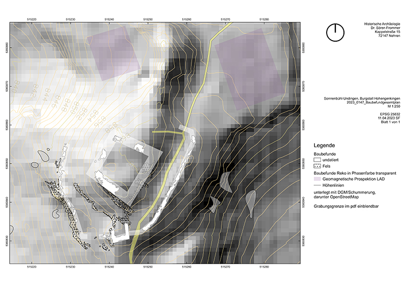 Der Berg ist vermessen, unsere Matrix, aber die Burg ist es noch nicht. Noch wissen wir nicht, was genau auf der Oberfläche von der Burg erhalten ist. Noch nie wurden die Mauern vermessen. Nie wurde genau geprüft, wo Mauern enden, sie abzweigen, was womöglich gar keine Mauer ist. Der Hohengenkingen ist kein Hohenschwanstein. Seine Geheimnisse sind schwerer zu lesen.