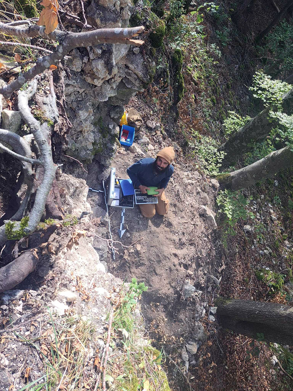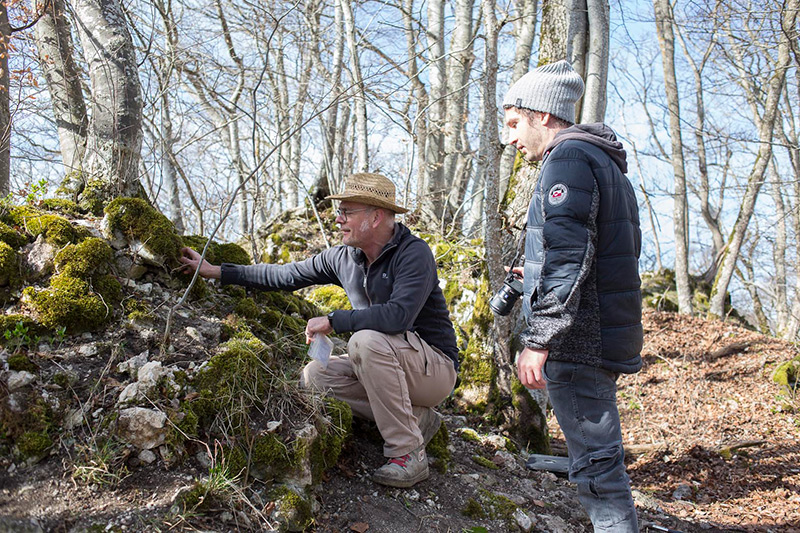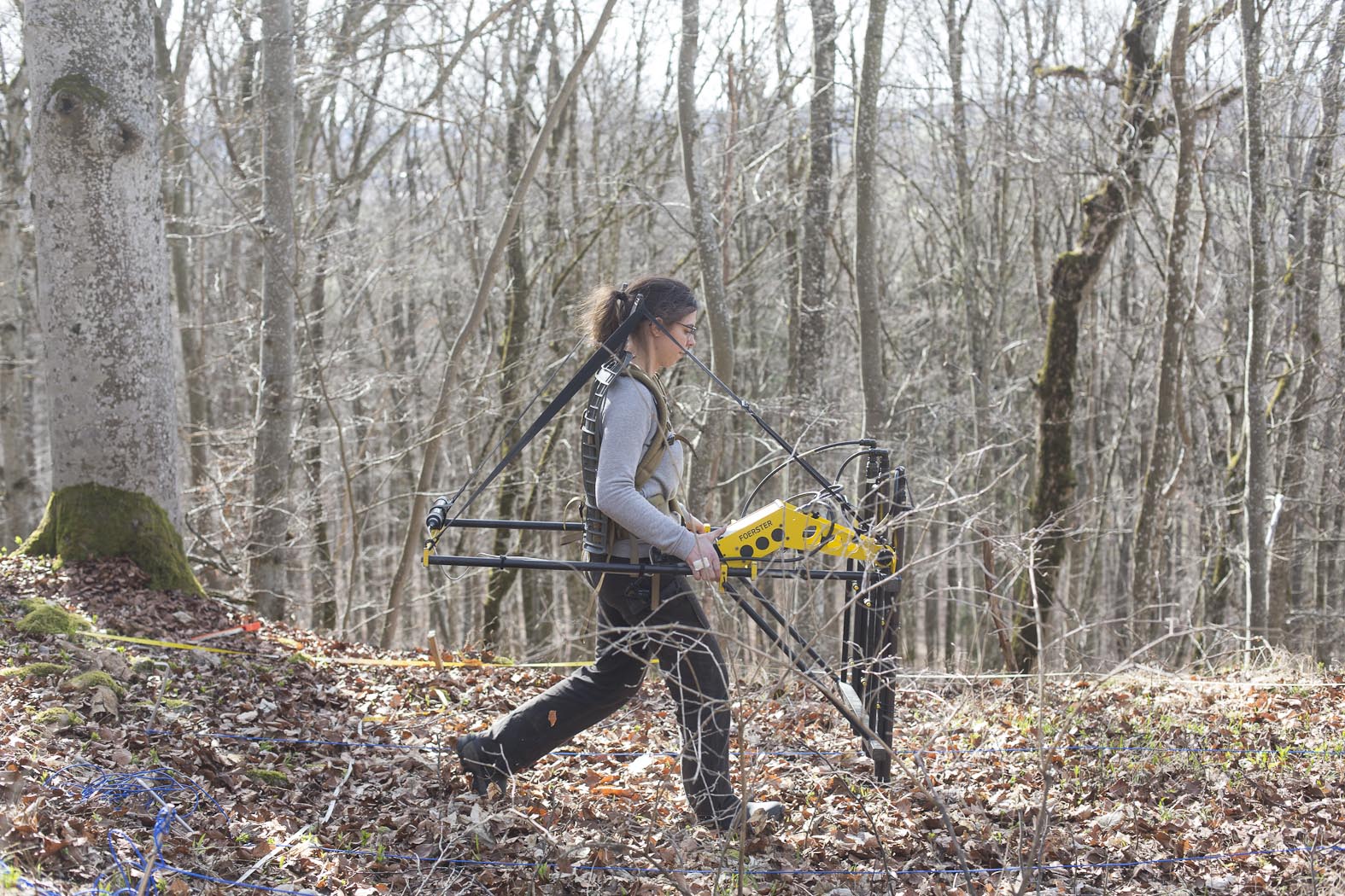 Es ist Ende März 2023. Eine Zwischenzeit. Der Winter ist vergangen, es liegt auf dem Berg kein Schnee mehr – und doch ist der Frühling noch nicht da. Es wächst noch kein Grün und spießt noch kein Unterholz. Der Boden des Bergwaldes ist so nackt wie sonst zu keiner anderen Jahreszeit. Bedeckt nur vom alten, flachgedrückten Laub. Ideale Bedingungen für das geplante Forschungsprojekt.