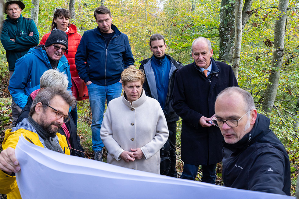 Die große Not ruft nach hohem Besuch: Die Landesministerin Nicola Razavi (CDU) besieht sich Ende Oktober das Desaster. Sie ist zuständig für Landesentwicklung und Wohnen, aber auch für den Denkmalschutz. Viel von der Burg bekommt auch sie nicht zu sehen, denn immer noch blockiert den Zugang ein Wall aus gestürzten Bäumen. Trotzdem zeigt sie sich beeindruckt. Finanziell fördern kann das Land das Projekt nicht, denn auch das Land leidet unter leeren Kassen.