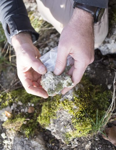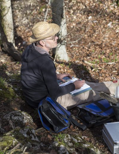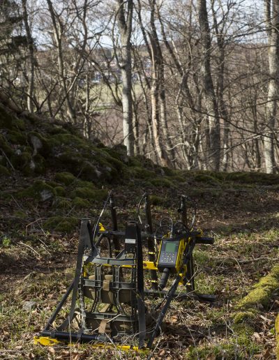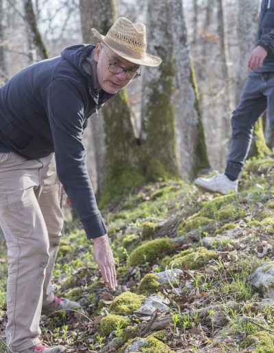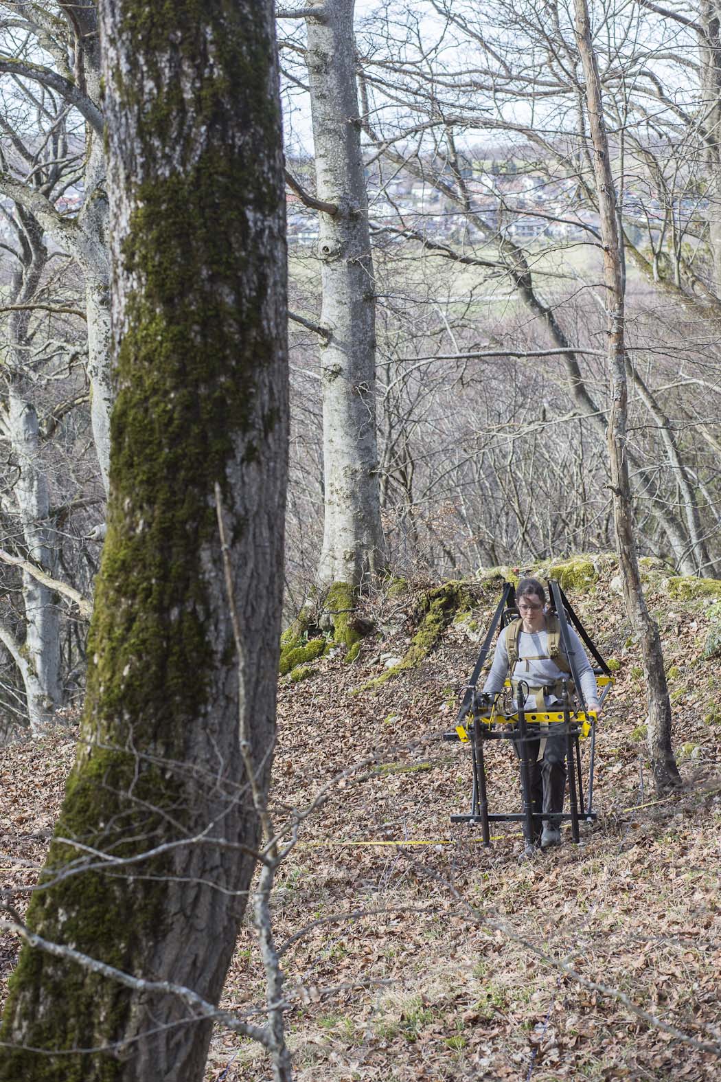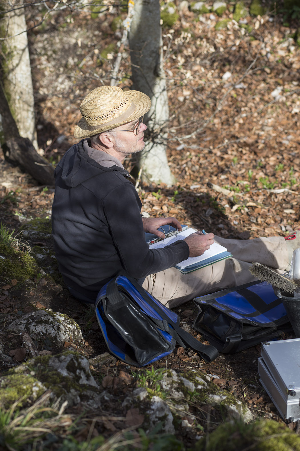 Es ist Ende März 2023. Eine Zwischenzeit. Der Winter ist vergangen, es liegt auf dem Berg kein Schnee mehr – und doch ist der Frühling noch nicht da. Es wächst noch kein Grün und spießt noch kein Unterholz. Der Boden des Bergwaldes ist so nackt wie sonst zu keiner anderen Jahreszeit. Bedeckt nur vom alten, flachgedrückten Laub. Ideale Bedingungen für das geplante Forschungsprojekt.