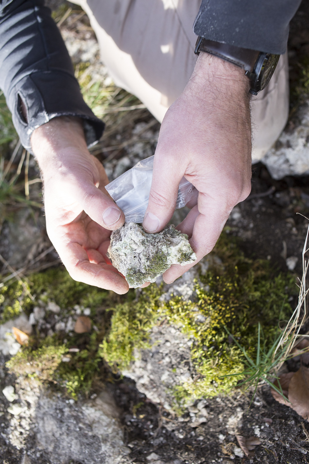 Eines der wichtigsten Arbeitsmittel, dass die Archäologen auf den Berg getragen haben, ist ein handelsüblicher Laubbläser. Niklas Reicherter, 29, eigentlich Sportstudent, aber regelmäßig auf archäologischen Grabungen mit dabei, bläst der Gruppe den Weg frei. Er entfernt das Laub von Jahrzehnten. Hier und da kratzt er das Moos auf den Steinen ab. Erstaunlich, was bereits mit diesen einfachsten Mittel zutage kommen wird.