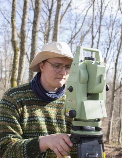 So werden sie nur ein Drittel der Fläche der Kernburg schaffen. Sie zerlegen das Bauwerk in Vermessungsgruppen. Sie sprühen farbige Linien auf den Boden. Kleine, rot gestrichene Pflöcke markieren die Bezugspunkte. Ist ein Bereich so abgegrenzt, betritt ihn Nikolas Reichert und weht das Laub weg. Frommer entnimmt dem Mauerwerk immer wieder Mörtelproben, die zu einem späteren Zeitpunkt unseres Projektes untersucht werden sollen. Die größte Überraschung der Forschungswoche: die Burg war größer als bisher angenommen. Ihre Besitzer hatten einst sehr viel komfortabler in ihr gelebt als bisher angenommen.