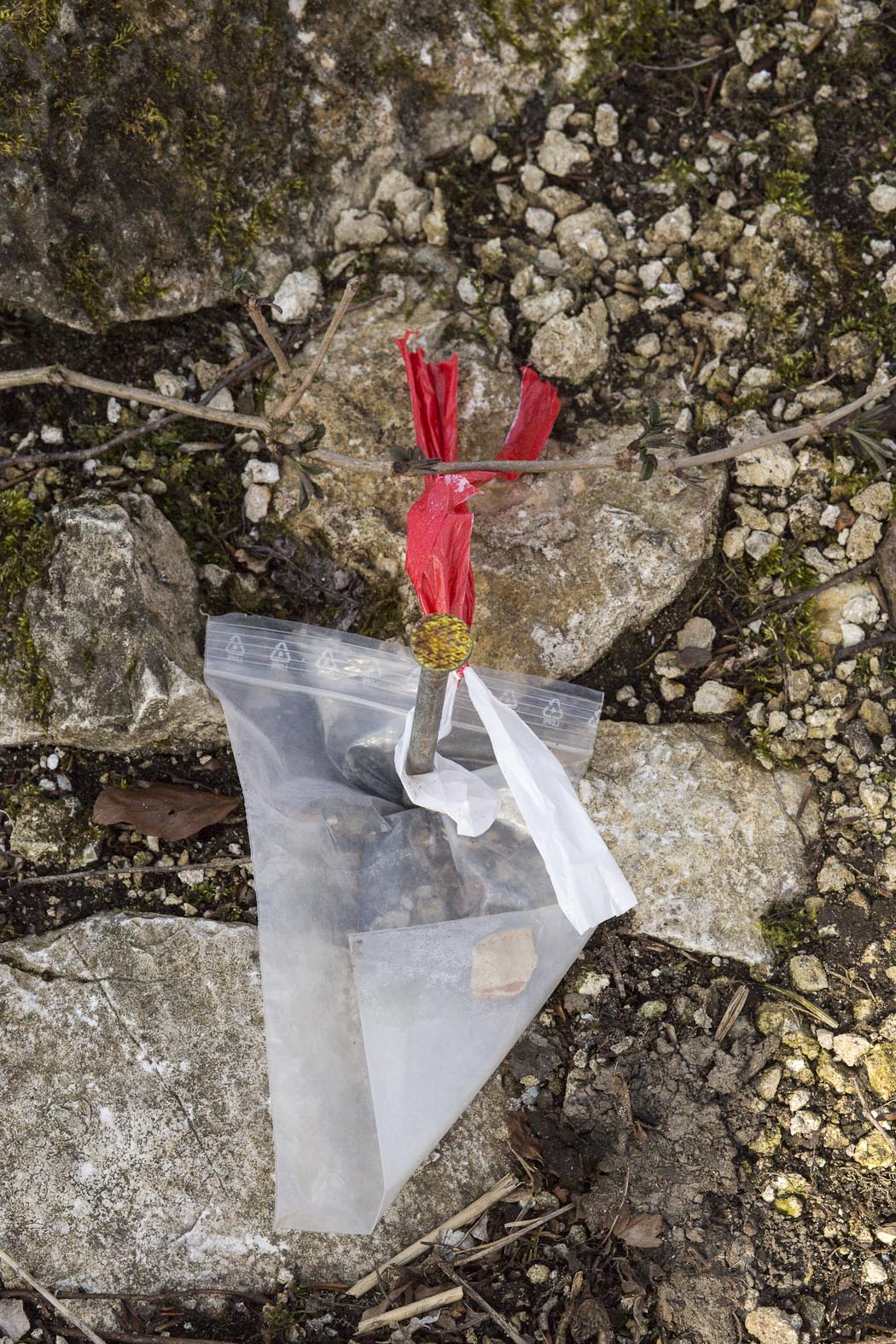 Noch einmal vermessen sie die westliche Ringmauer, von der größere Teile in den Hang gebrochen sind. Was von ihr noch steht, ist akut einsturzgefährdet. Noch einmal wird fotografiert. Shane Cavlovic untersucht mit einem Spachtel den Schutt.