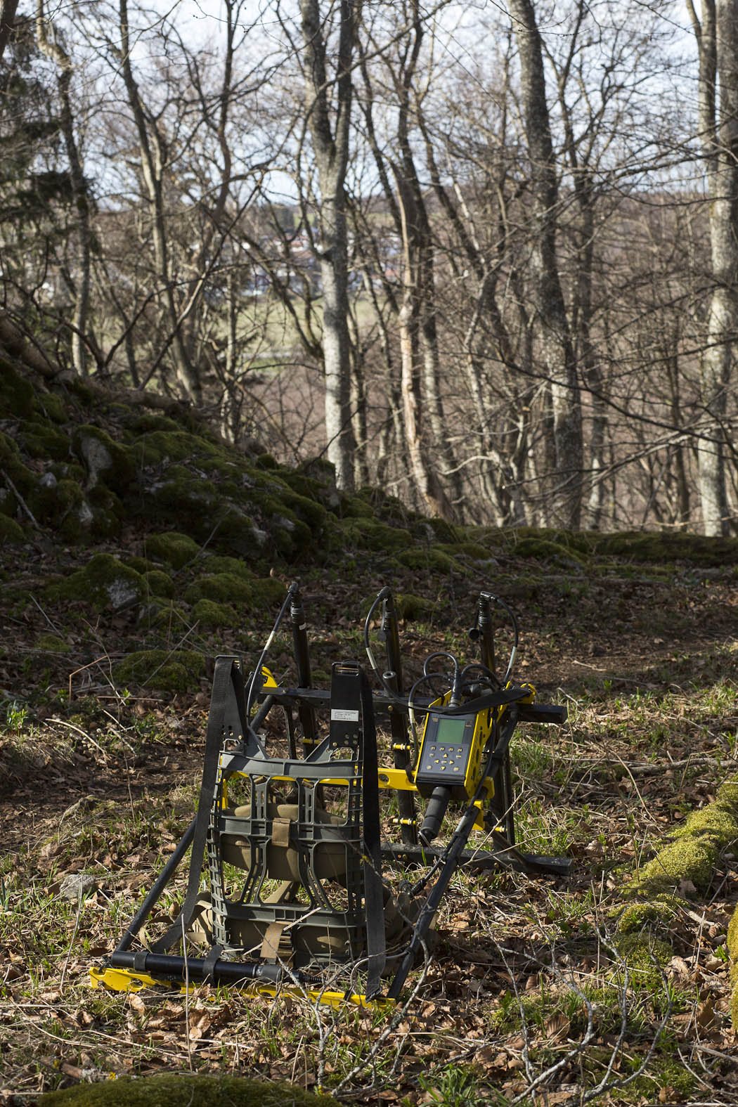 Zwei Flächen eignen sich auf der Burg für eine Untersuchung mit dem Geo-Magnetometer. Das Areal der hinteren Vorburg, eine flache Ebene zwischen Burggraben und Kernburg. Außerdem die Fläche der oberen Terrasse, auf der, so wie Dr. Frommer mittlerweile vermutet, einst der Palas des Adelsfamilie gestanden hat. Pickartz hängt sich mit Hilfe ihres Kollegen die Gurte des ausladenden Meßgeräts an. Mit weißen Plastikbändern haben sie zuvor das Untersuchungsgebiet abgegrenzt. Kernstück des Messgeräts sind drei schwarze Röhren, die Gradiometer. Sie messen Anomalien im Erdmagnetfeld.